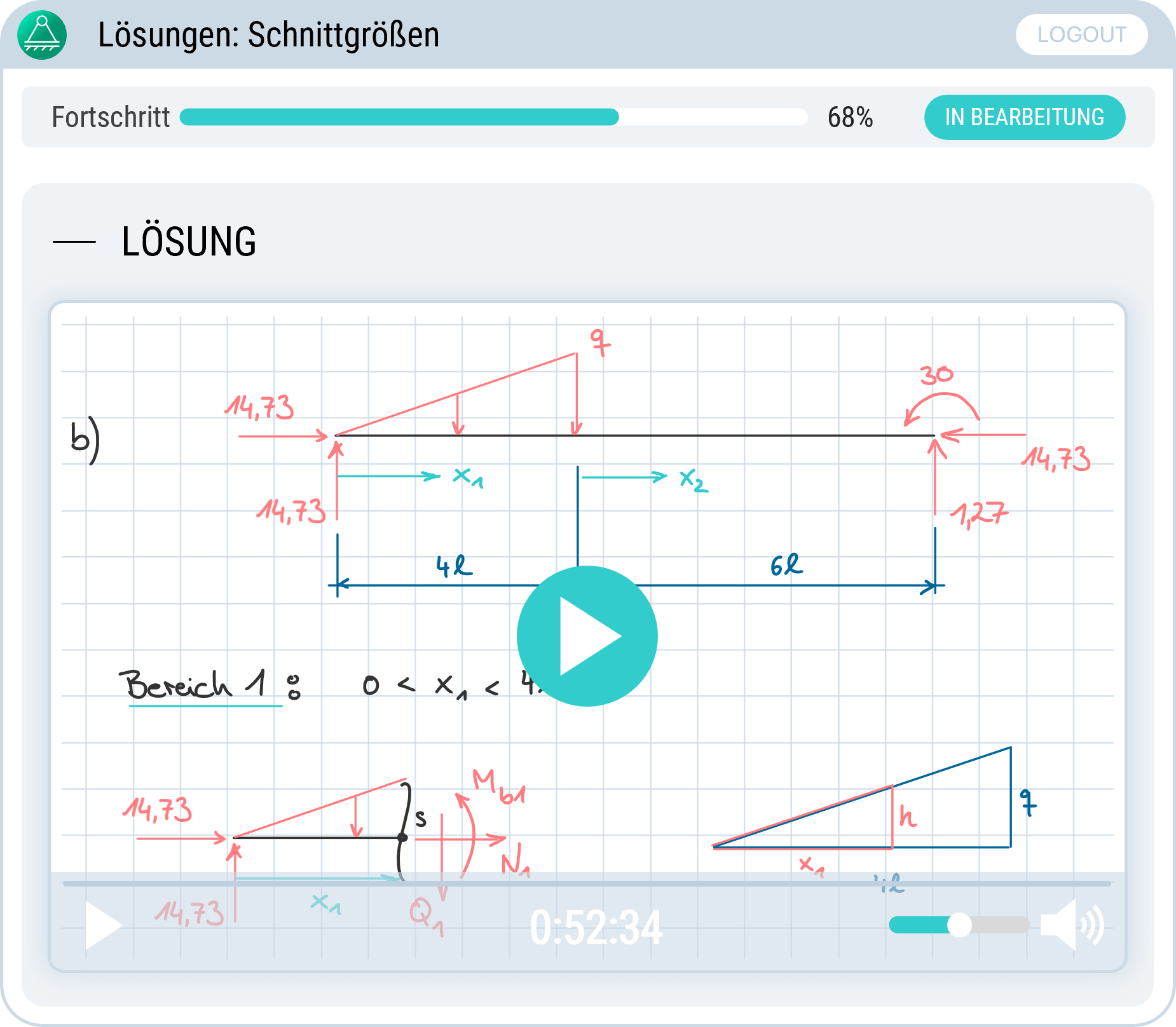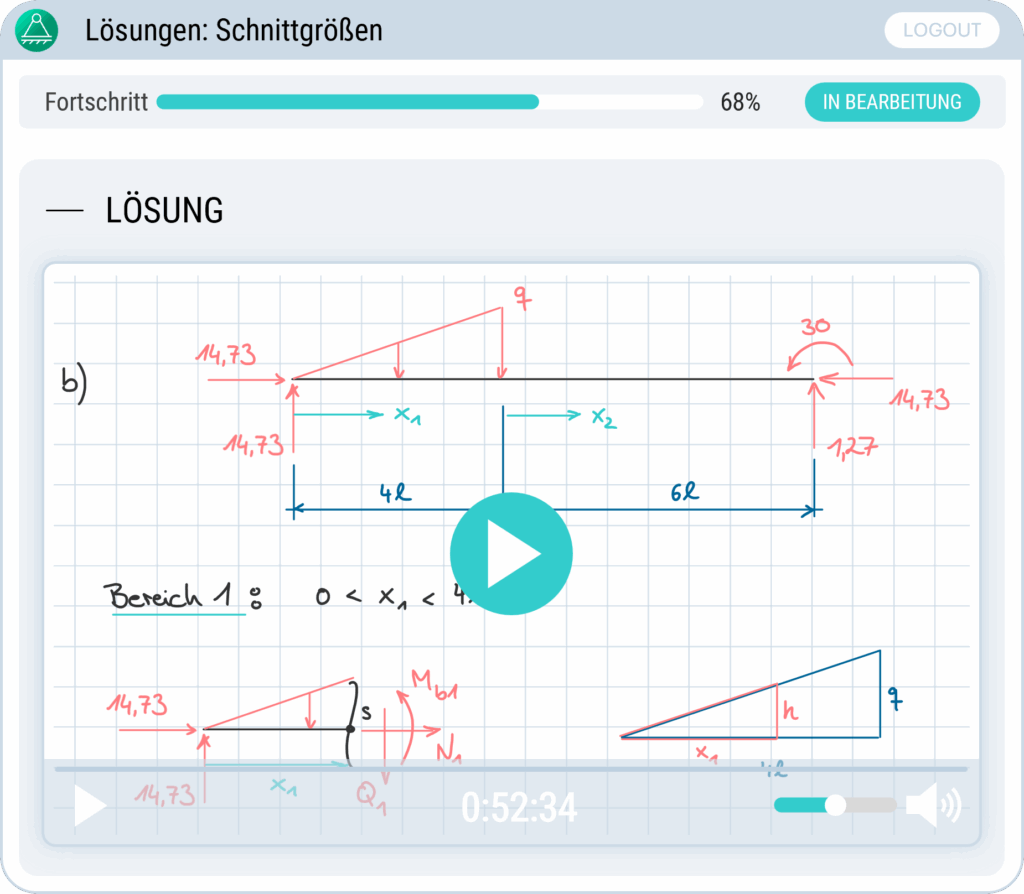 Lerne jetzt Technische Mechanik 1 im Onlinekurs mit leicht verständlichen Erklärungen und Zwischenprüfungen zu den einzelnen Themen. Nutze eine sorgfältig zusammengestellte und ausführlich vorgerechnete Aufgabensammlung, die alle typischen Fallen einer TM1 Klausur behandelt.